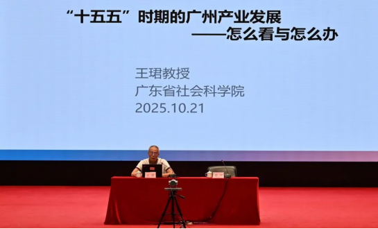 10月21日,广州市花都区委宣传部、区委组织部、区委党校联合举办学习宣传贯彻《习近平谈治国理政》第五卷宣讲暨“名家讲习”专题培训。广东省政府参事室特约研究员,广东省社会科学院原党组副书记、院长,中山大学岭南学院经济学教授、博士生导师王珺受邀作题为“‘十五五’时期的广州产业发展:怎么看与怎么办”宣讲报告。